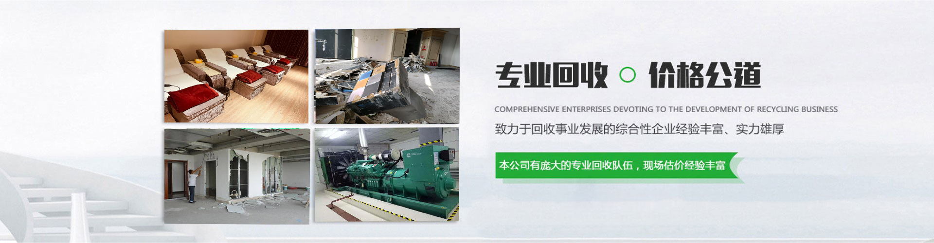 01專業資源回收企業一站式再生資源回收企業整廠、商場、KTV、酒吧、 賓館、洗浴中心等拆除回收。公司業務現已經遍布全國。 我們始終堅持“以誠合作,以信經營,價高同行,變廢為寶”服務于廣大企事業單位。02回收價格公道價格合理,安全放心整廠、商場、KTV、酒吧、 賓館、洗浴中心等拆除回收。公司業務現已經遍布全國。 我們始終堅持“以誠合作,以信經營,價高同行,變廢為寶”服務于廣大企事業單位。